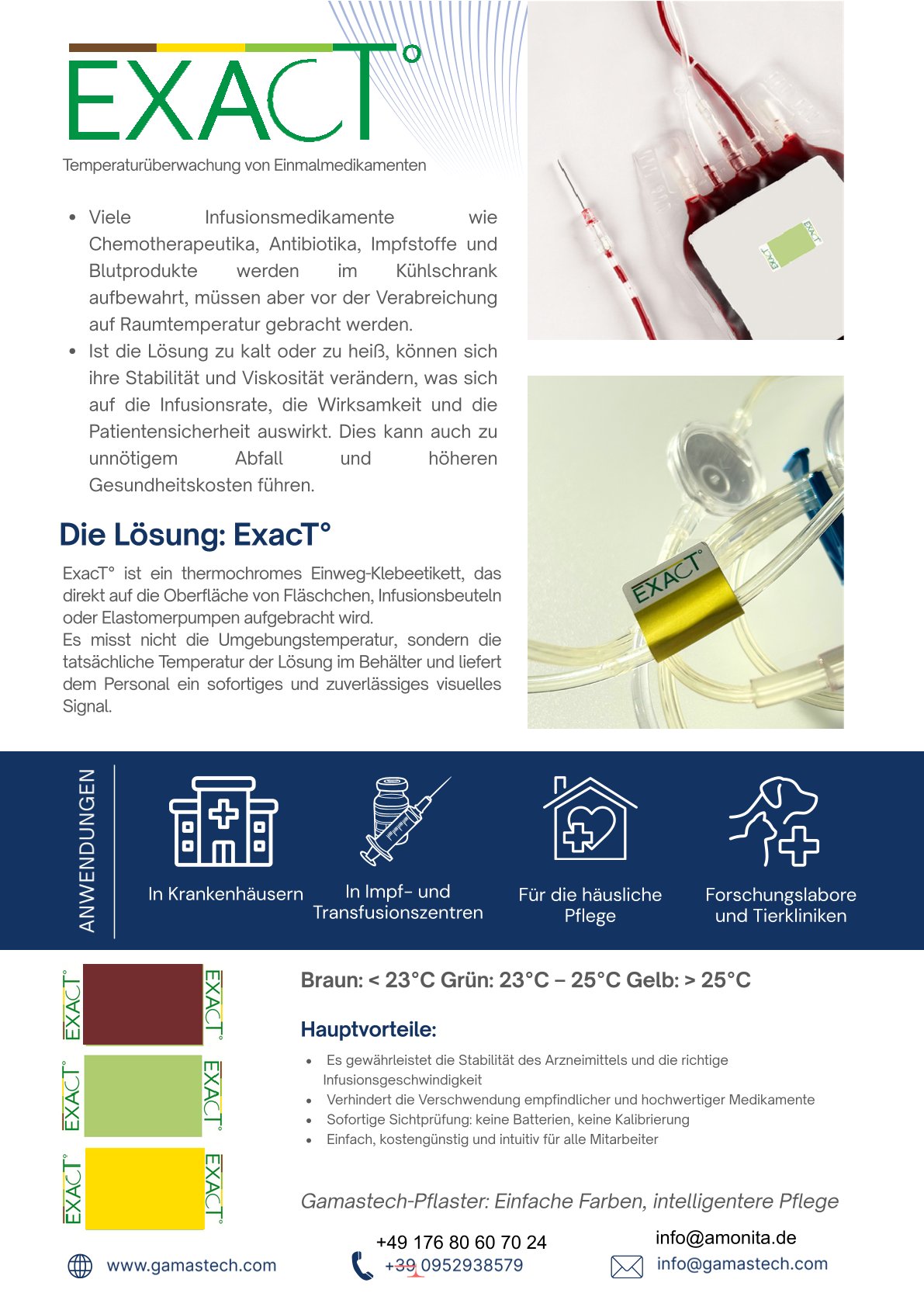 Die Farbe des T°Patch variiert je nach Temperatur mit einer Genauigkeit von ±0,2°C.